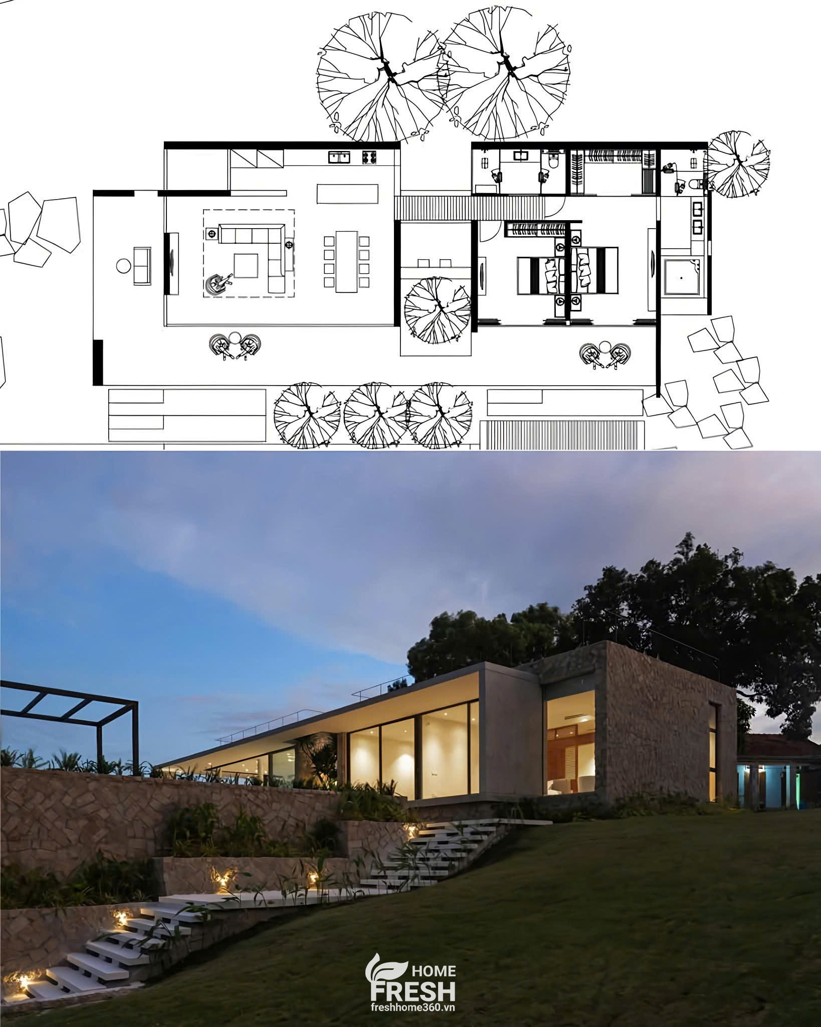 Chính sự tiết chế trong hình khối và vật liệu đã tạo nên vẻ đẹp bền vững, không phô trương nhưng đầy chiều sâu