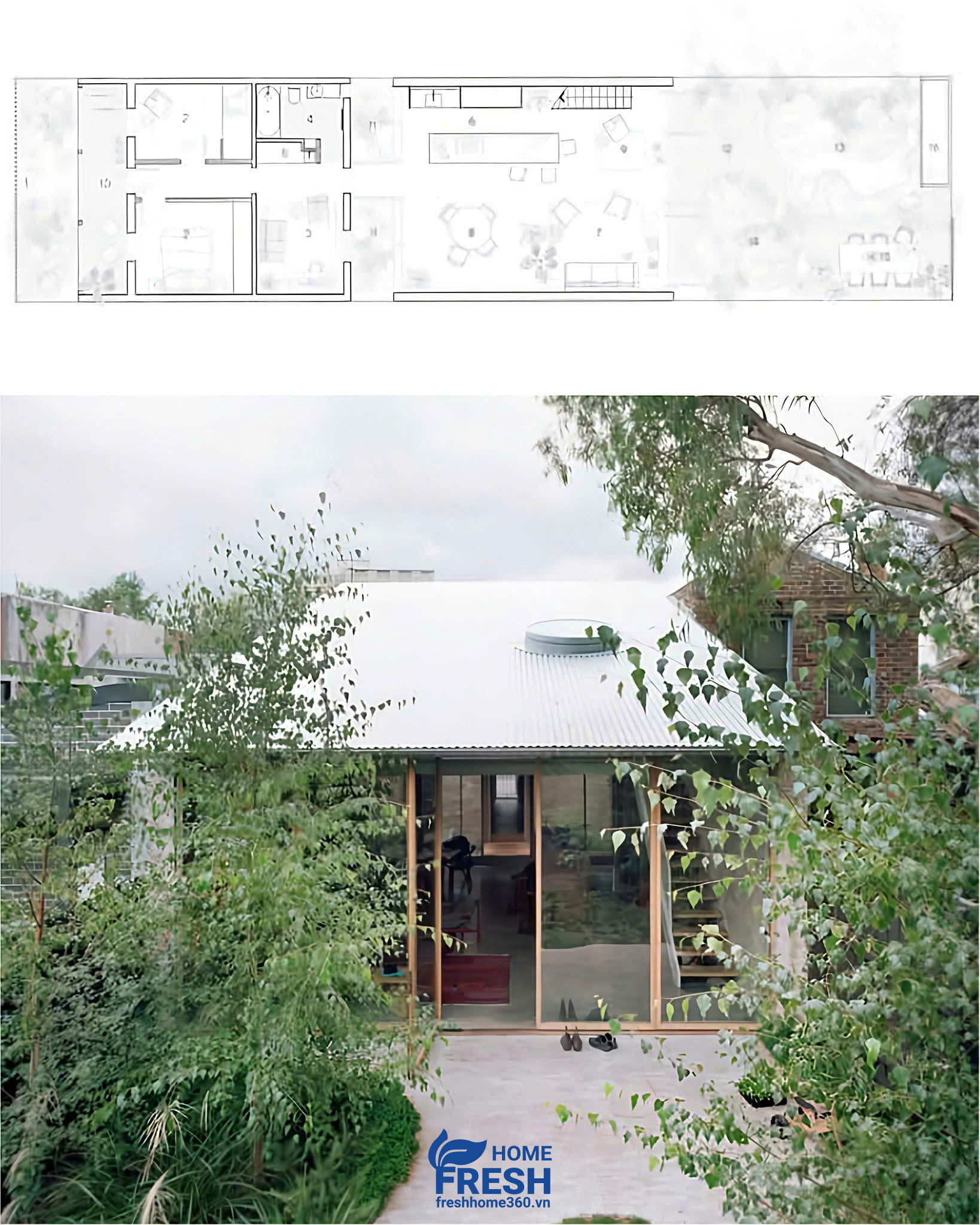 • Kết nối trong nhà – ngoài trời bằng hiên, sân, lối dạo xanh