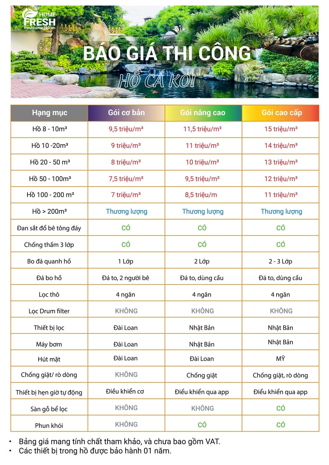 Bảng giá: Đơn giá theo thỏa thuận sau khi khảo sát sơ bộ công trình.