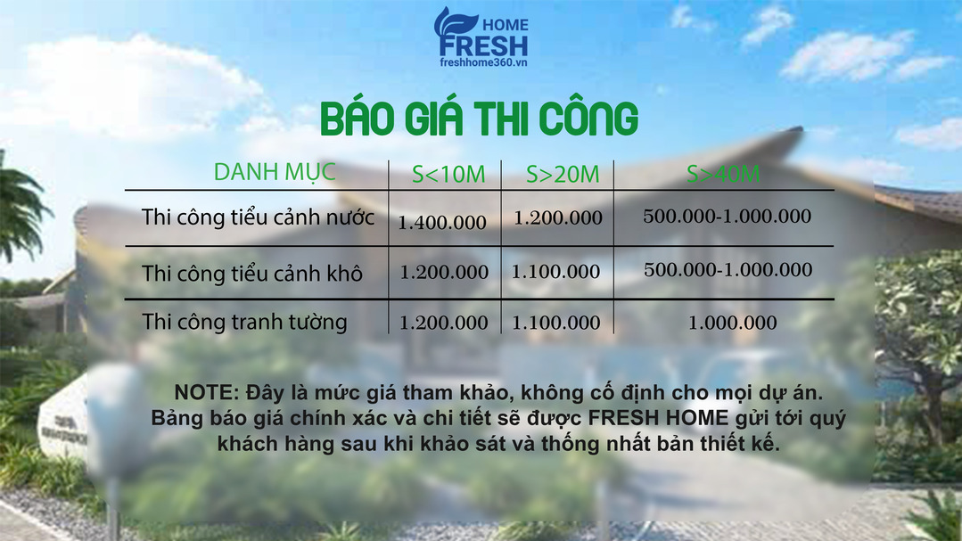 đến quý khách hàng bảng báo giá thiết kế và thi công, cải tạo ngoại thất: sân vườn, cảnh